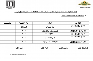 جدول الامتحانات لتمهيدى ماجستير قسم طباعة المنسوجات والصباغة والتجهيز