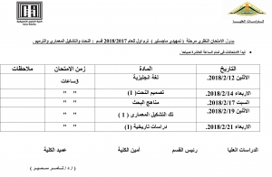 جدول الامتحانات لتمهيدى ماجستير قسم النحت والتشكيل المعماري