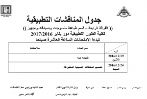 جدول المناقشات التطبيقية الفرقة الرابعة - ساعات لائحة قديمة لقسم الاعلان والطباعة والنشرللعام الدراسى 2016/2017 12 ديسمبر 2016 | نشر فى الأخبار