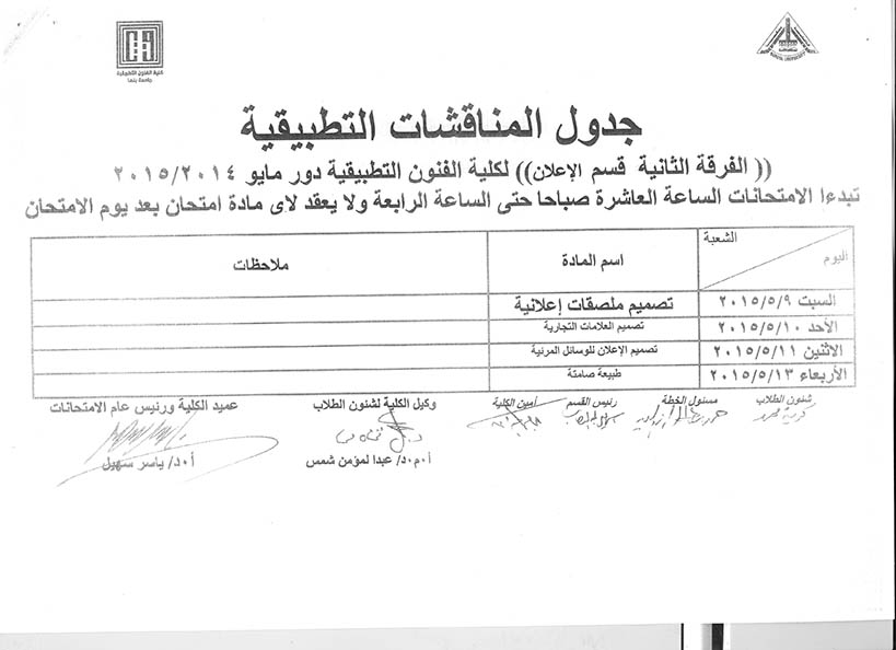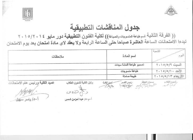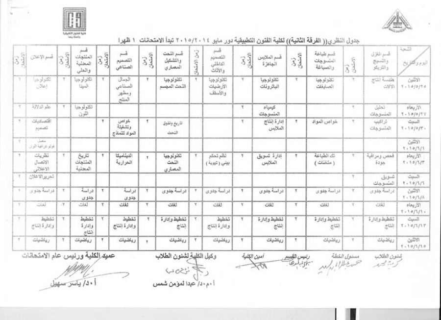 جدول النظري والمناقشات التطبيقية للفرقه الثانيه جميع الشعب