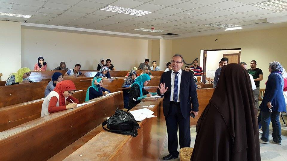 وكالعادة قام اليوم الاستاذ الدكتور / ياسر سهيل - عميد كلية الفنون التطبيقية جامعة بنها بتفقد حركة سير الامتحانات النظري لدور مايو لعام 2014-2015م بكلية الفنون التطبيقية جامعة بنها ورافقة اليوم الاستاذ /يحيى محمد جمال الجندي - مدير الكلية للتأكد من التزام السادة اعضاء هيئة التدريس والسادة الملاحظين والمراقبين بالقيام بدورهم علي اكمل واجه , كما شدد سيادته بالالتزام بالقوانين الموضوعة لانتظام وتأمين حركة سير عملية الامتحانات بالكلية كما قام الدكتور / سهيل , بتقديم بعض الارشادات للطلاب اثناء الامتحان حتي يتمكنوا من الحصول علي اعلي درجة ممكنه .