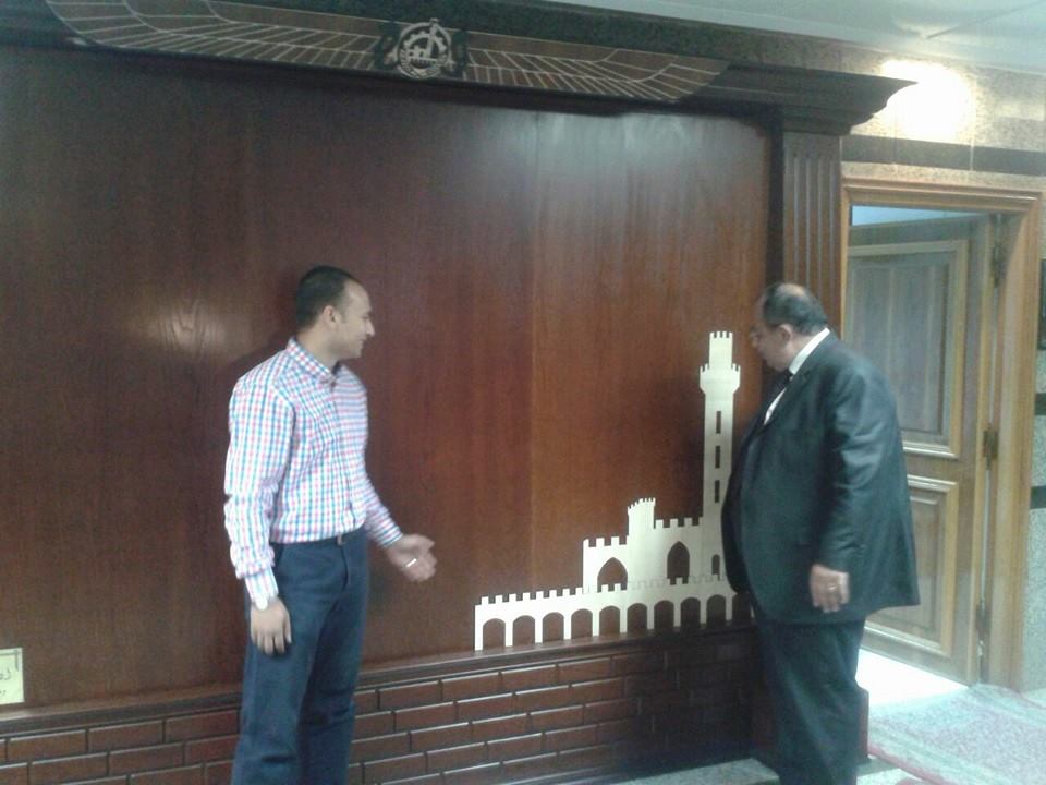 تحت رعاية ا. د على شمس الدين تم تصميم وتنفيذ جدارية فنية من الخشب .اهداء من جامعة بنها الى محافظة القليوبية .