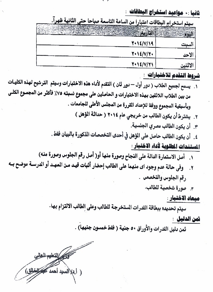 شروط التقدم لاختبارات القدرات لكلية الفنون التطبيقية جامعة بنها وذلك لطلاب الدبلومات الفنية نظام الخمس سنوات مميز